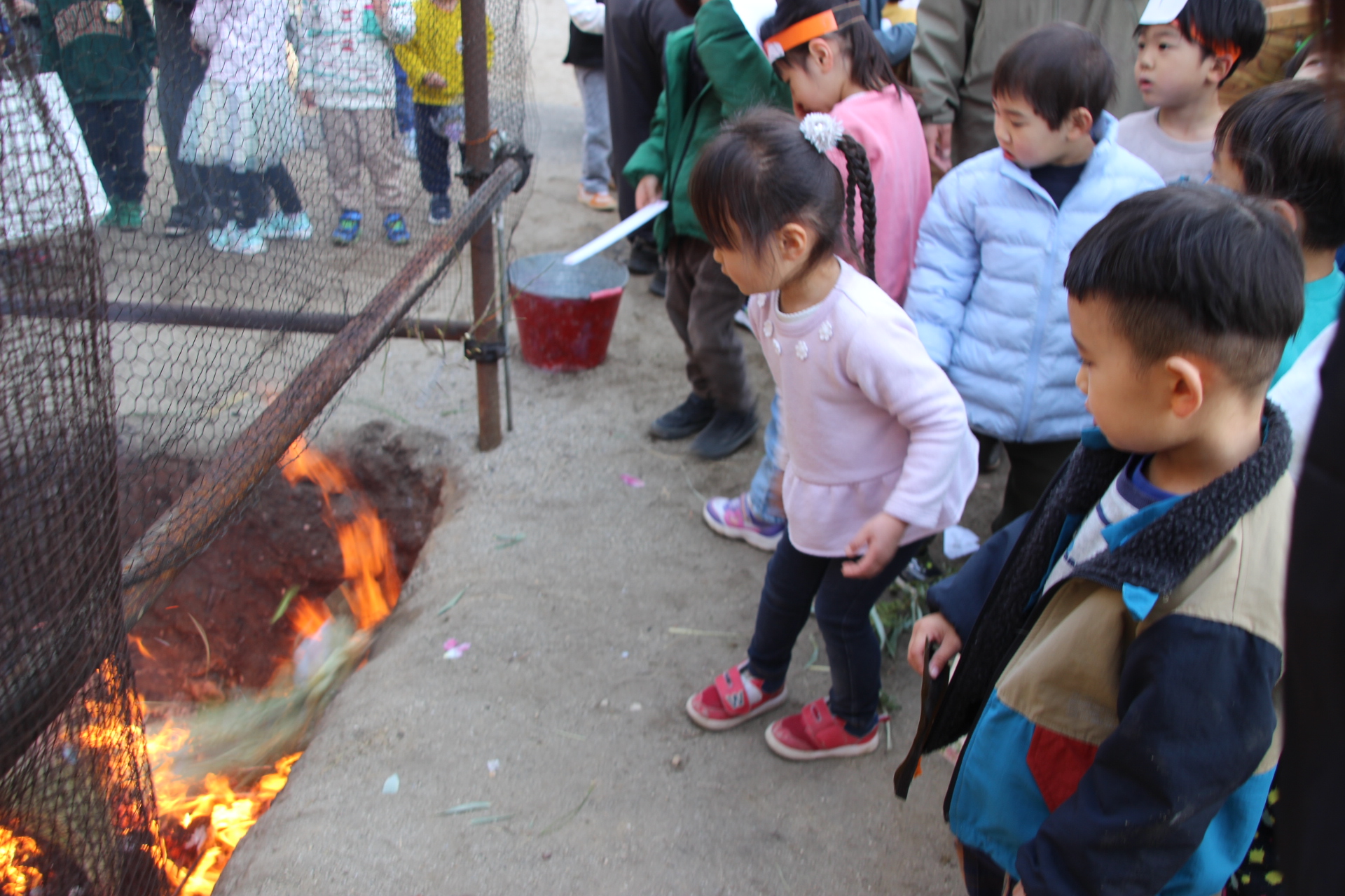 1月も、あっという間に半ばの15日。きょうは、裏にある成澤鹿島神社のどんと焼きに行きました。手に手にしめ飾りなどの外した正月飾りなどをもっていきました。きょうは裏の森からではなく、正面の階段を登っていきました。おじさんやおじいちゃんたちが迎えてくれました。手に持っていた飾りは勿論のこと、今日のために集まっていた飾りやお守り・達磨・天狗や破魔矢・・といろんなものを火の中にくべさせてもらいました。火や煙を見つめたり、お参りしたりしていたら、「ミカンをどーぞ」と声をかけていただき、ミカンをひとつずつ頂いて、みんなで頂きました。お外で食べるミカンの味はかくべつでした。帰りは、森を抜けて帰り、ヤギのゆりちゃんにミカンの皮をあげました。ゆりちゃん大喜びでした。なんと園についたら、さらに、2箱もミカンが届いていました。明日また食べようね。神社の氏子さんたちありがとうございました。