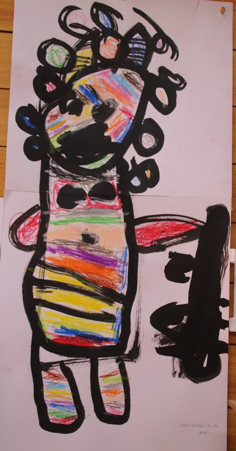 最後は、先日かぜ組の年中・年長さんが一緒に力を合わせて描いた「凧をあげるわたしたち」の作品の一部です。