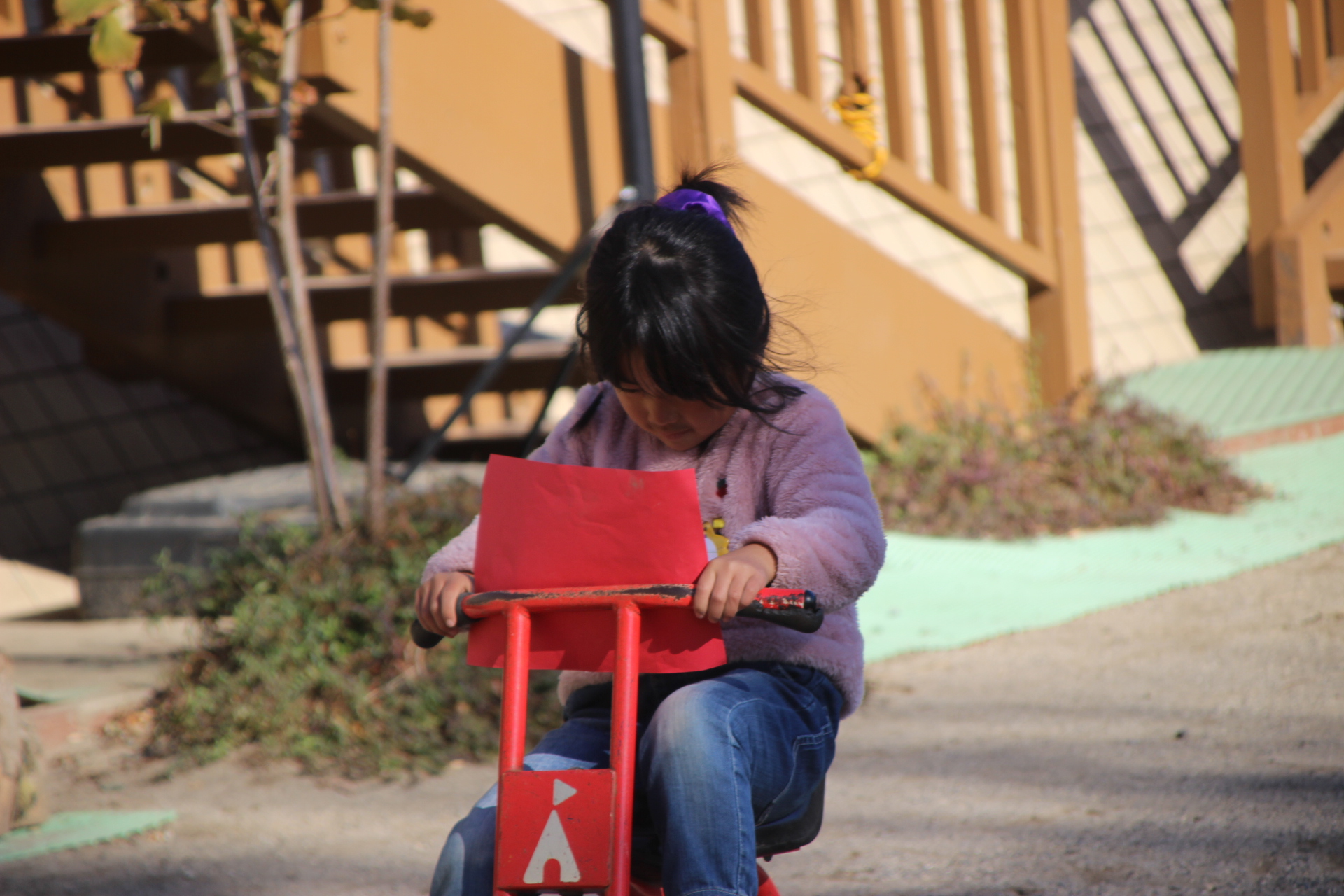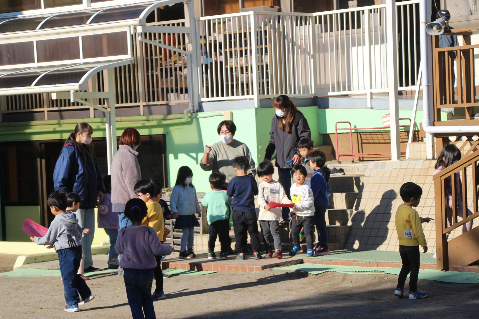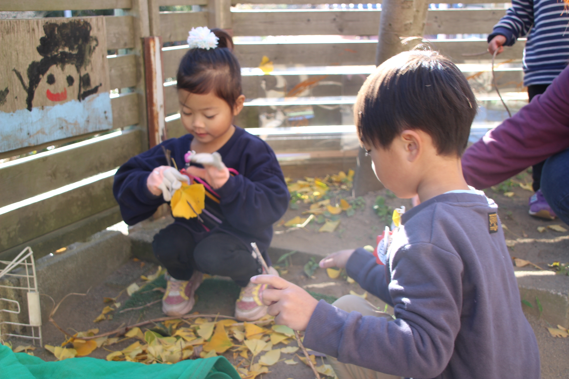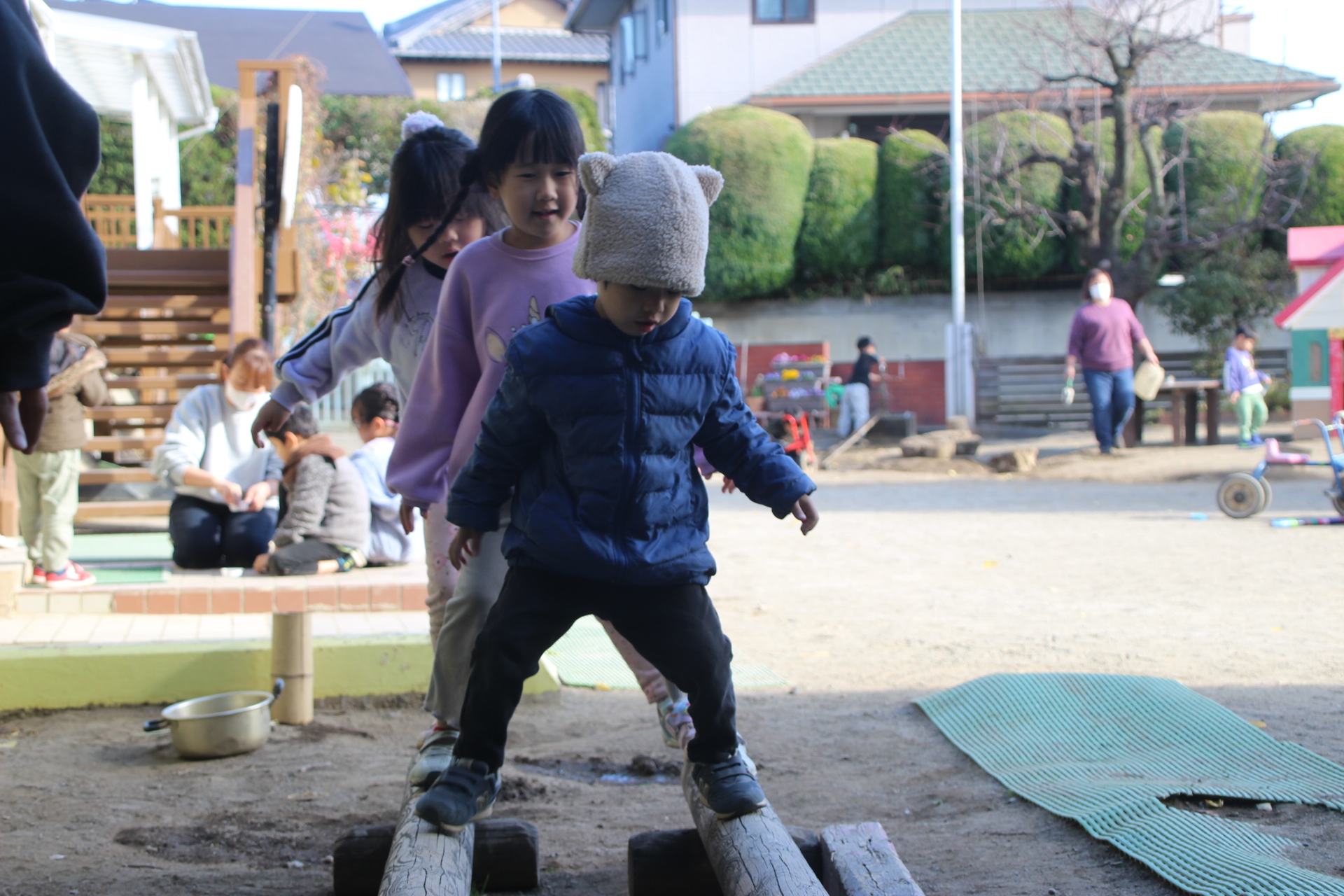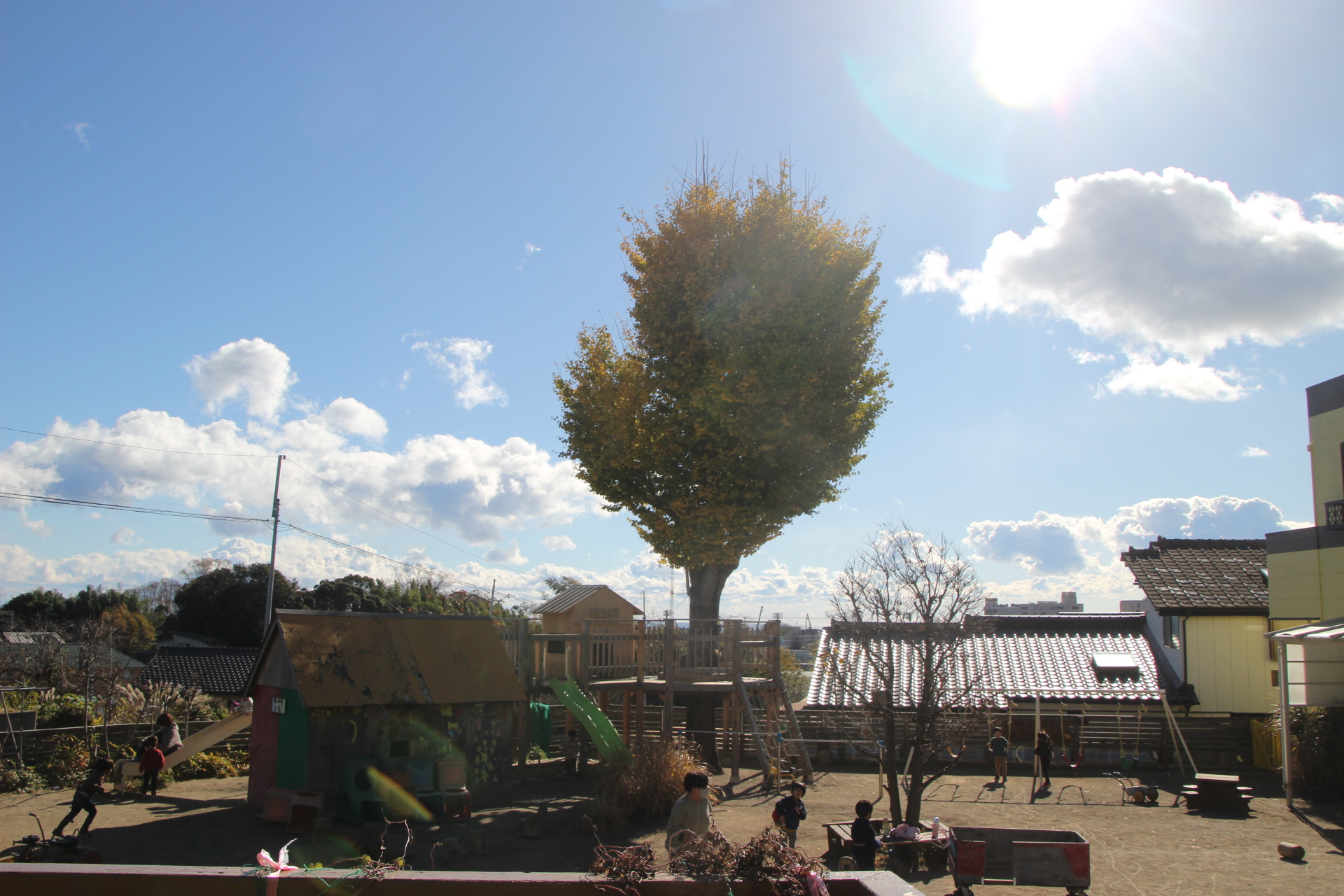 本格的な冬の訪れを告げるかのように、冬空を背景に園庭のイチョウの葉がキラキラと輝いています。そして子どもたちも、目をキラキラと輝かせて遊んでいます。真剣なまなざし、そして初めてのことに挑む姿が多くみられるこの頃です。