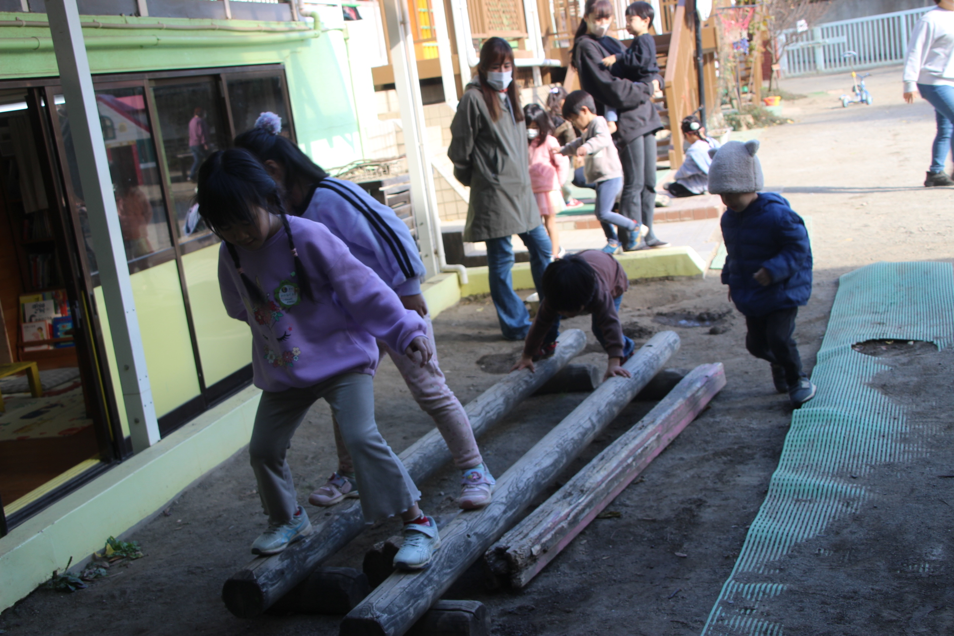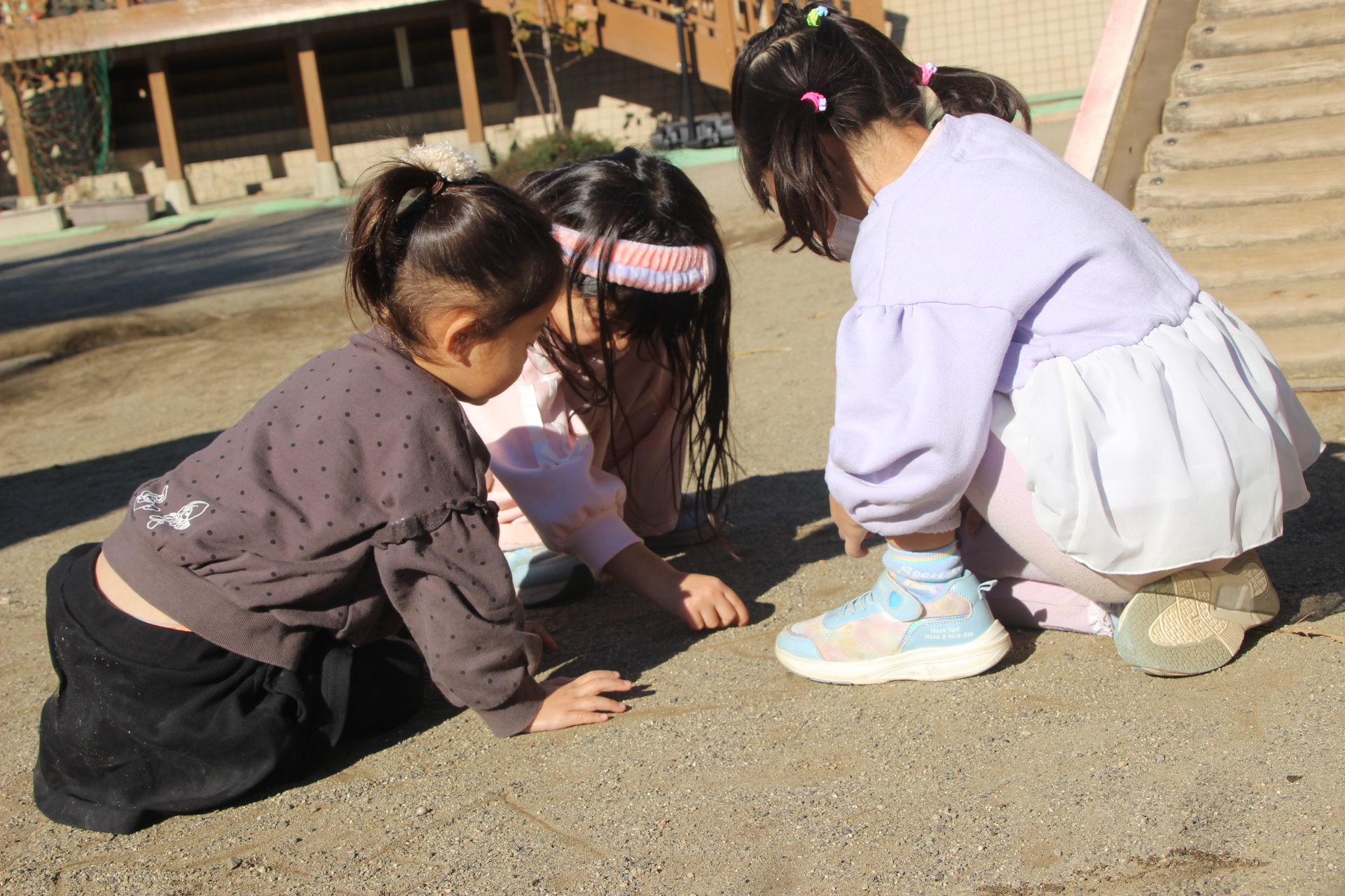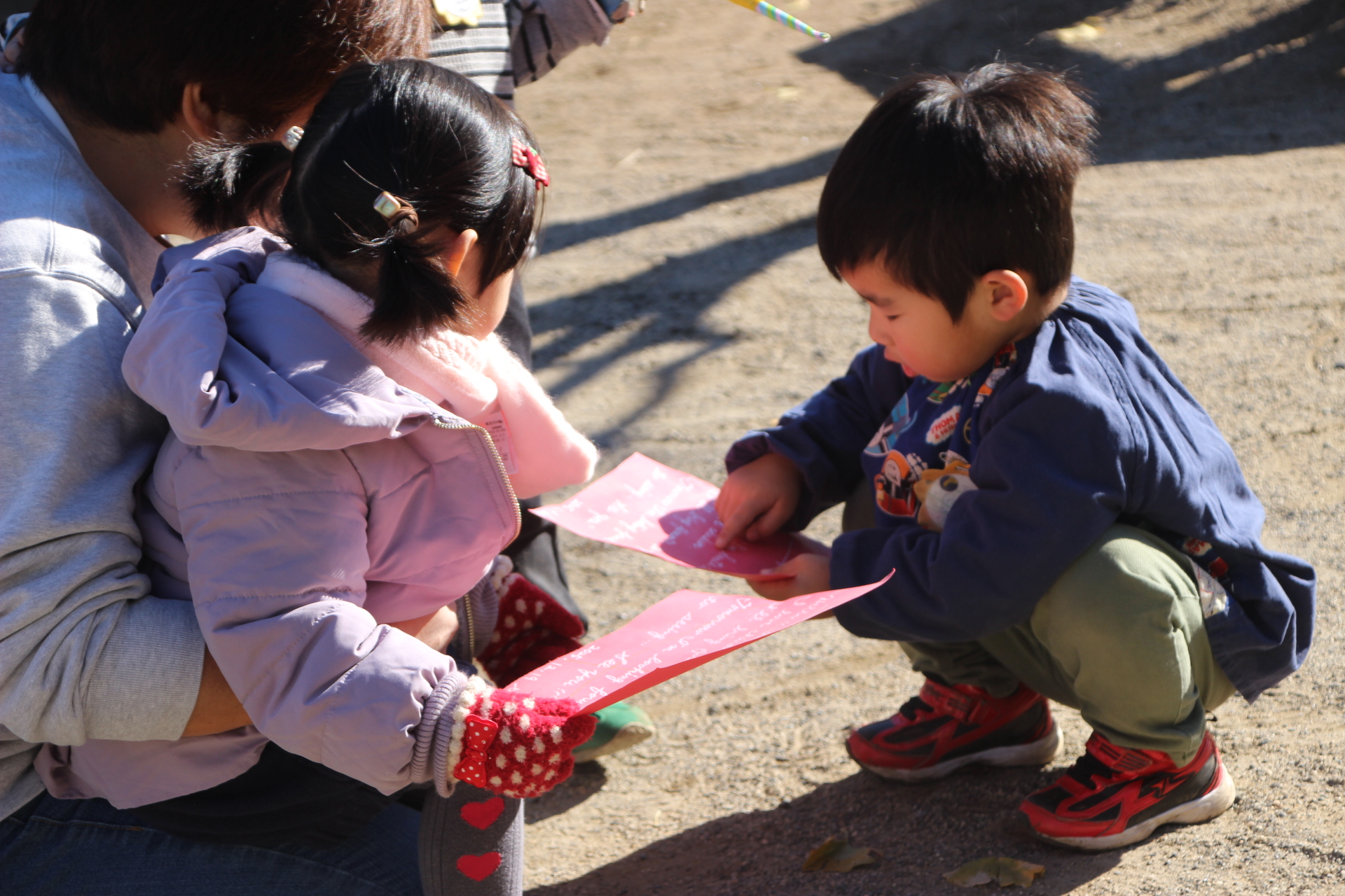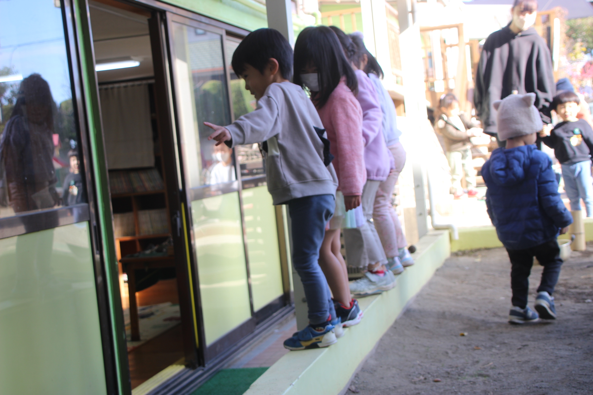本格的な冬の訪れを告げるかのように、冬空を背景に園庭のイチョウの葉がキラキラと輝いています。そして子どもたちも、目をキラキラと輝かせて遊んでいます。真剣なまなざし、そして初めてのことに挑む姿が多くみられるこの頃です。