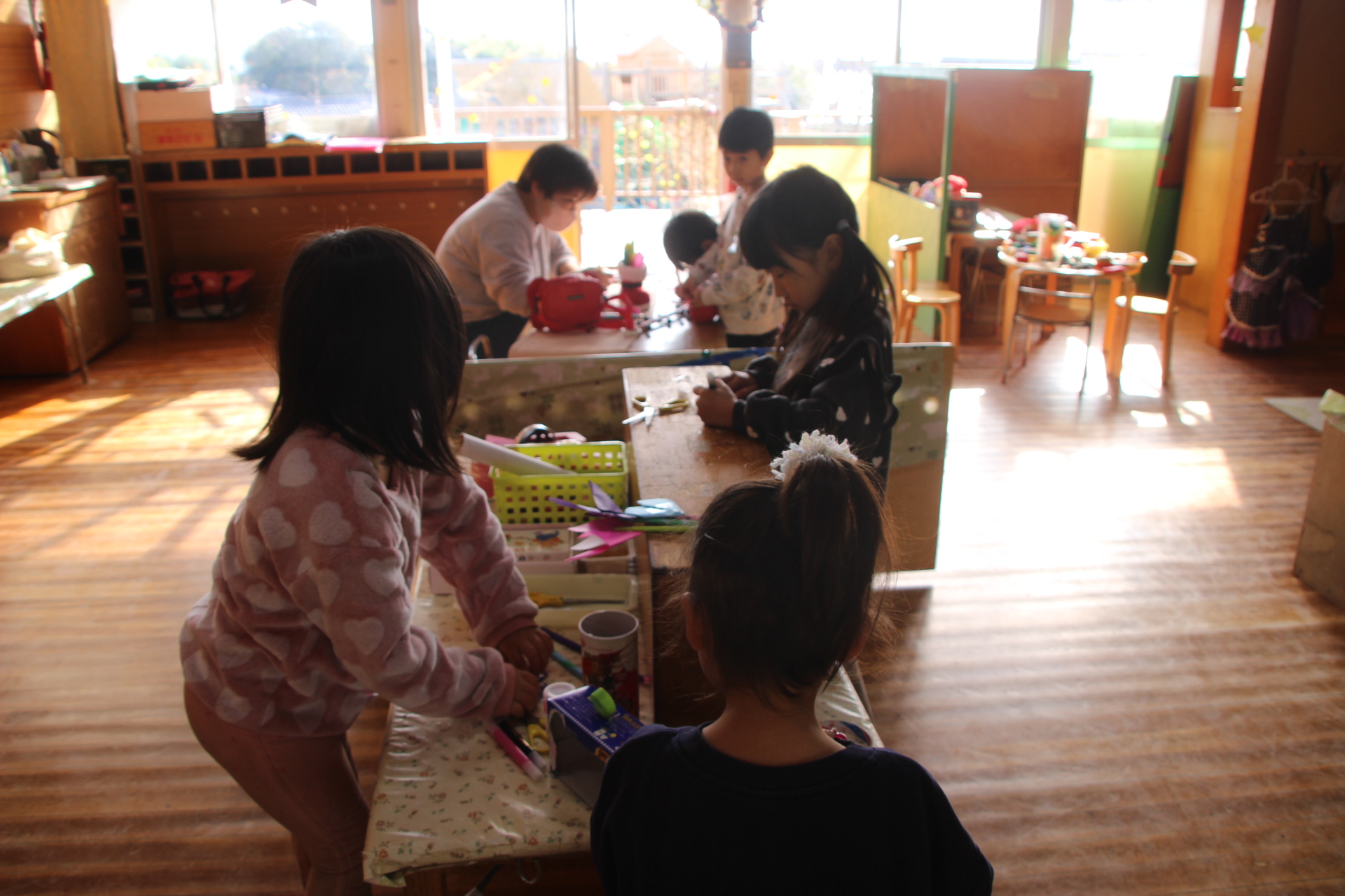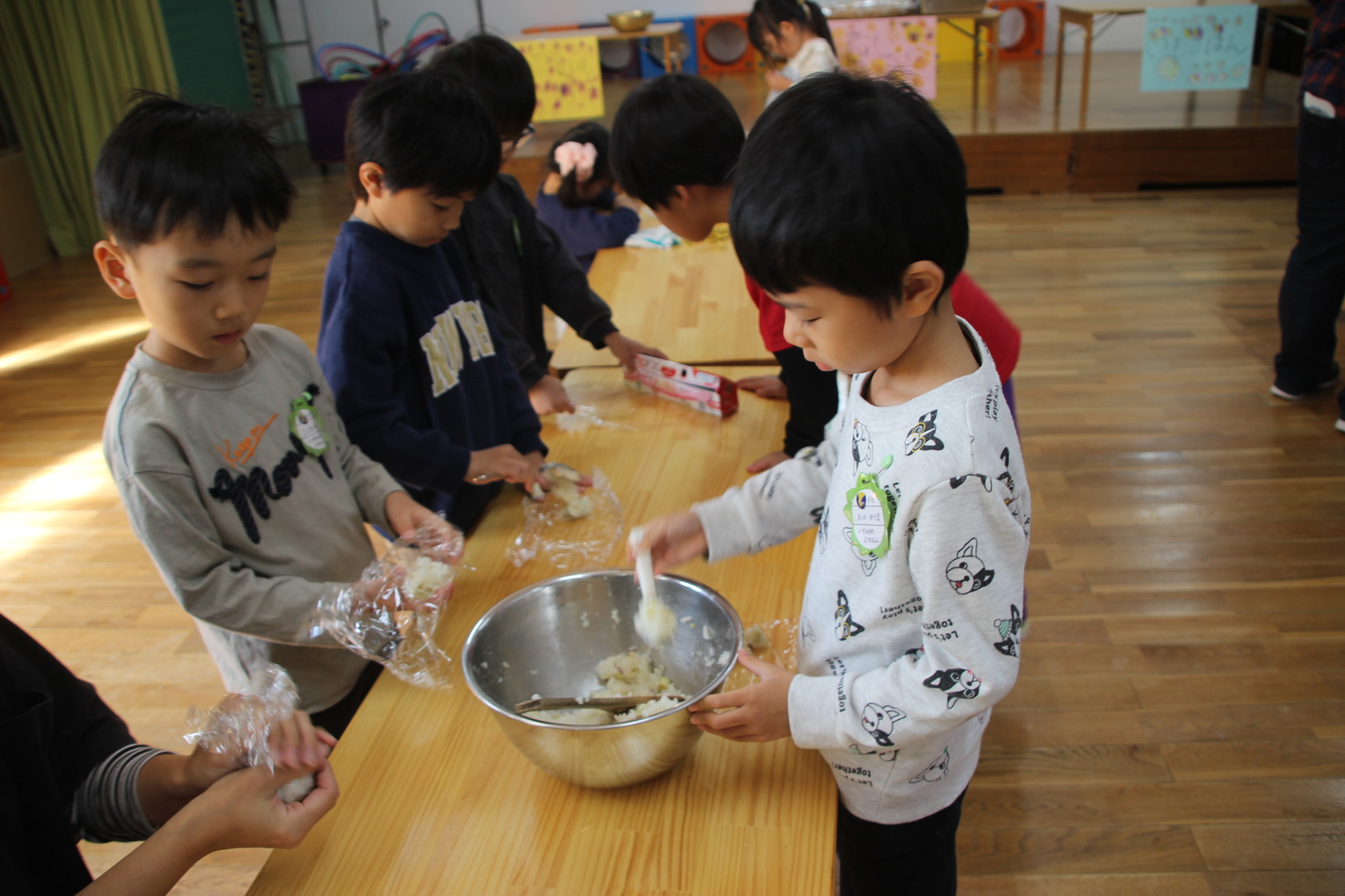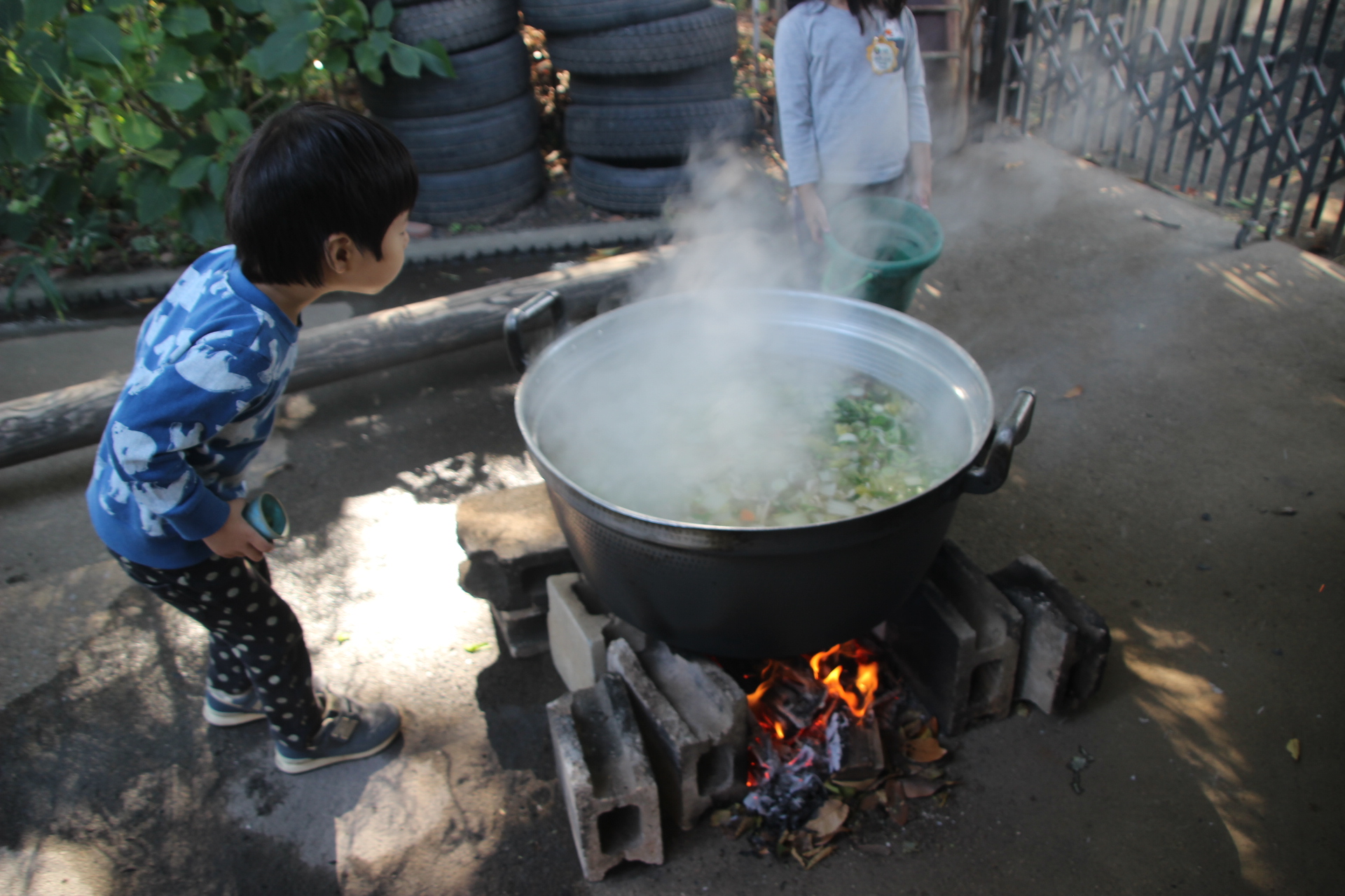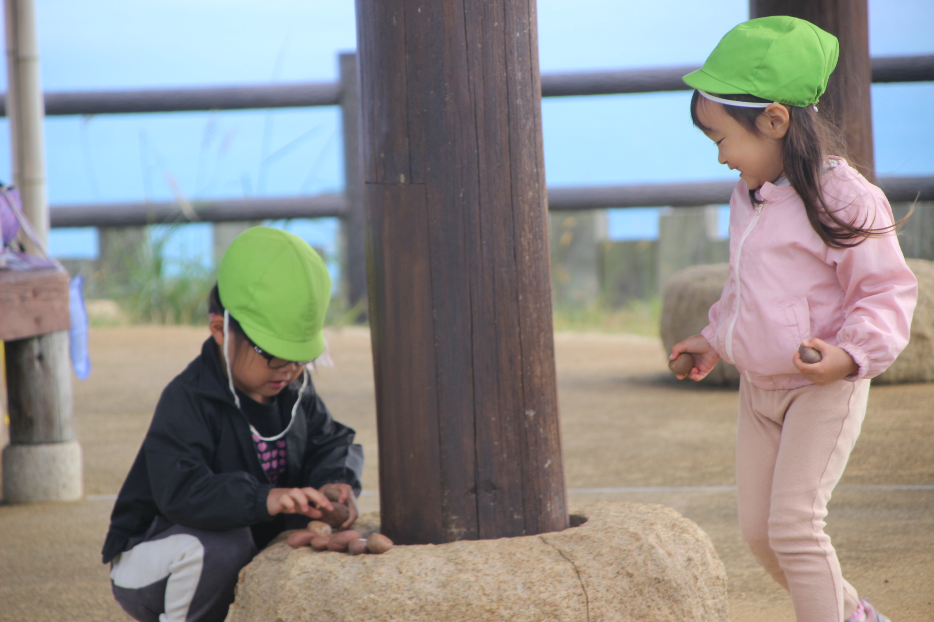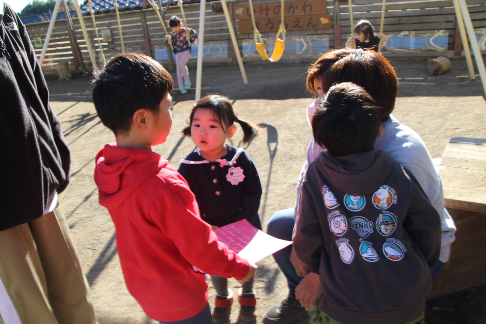 本格的な冬の訪れを告げるかのように、冬空を背景に園庭のイチョウの葉がキラキラと輝いています。そして子どもたちも、目をキラキラと輝かせて遊んでいます。真剣なまなざし、そして初めてのことに挑む姿が多くみられるこの頃です。