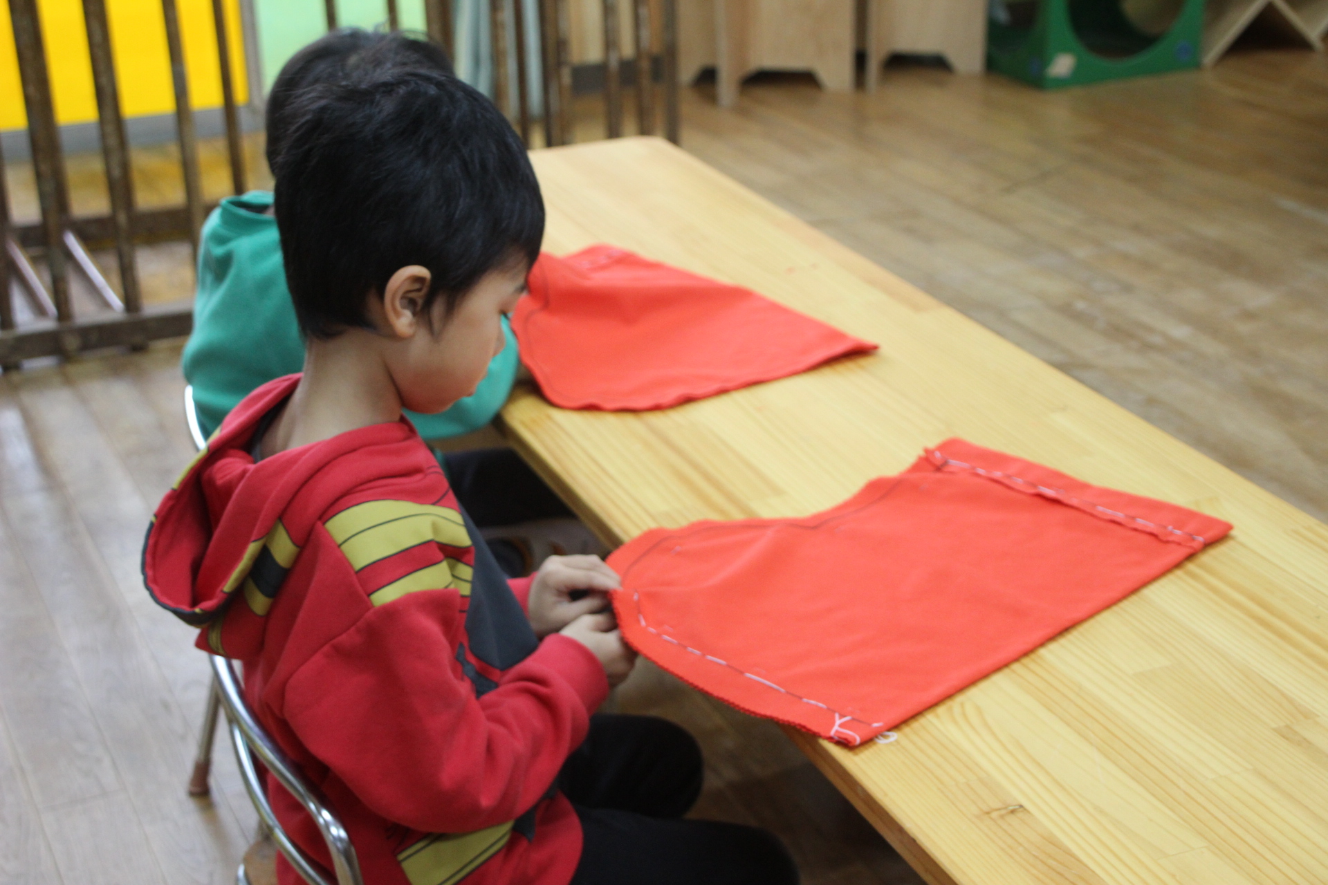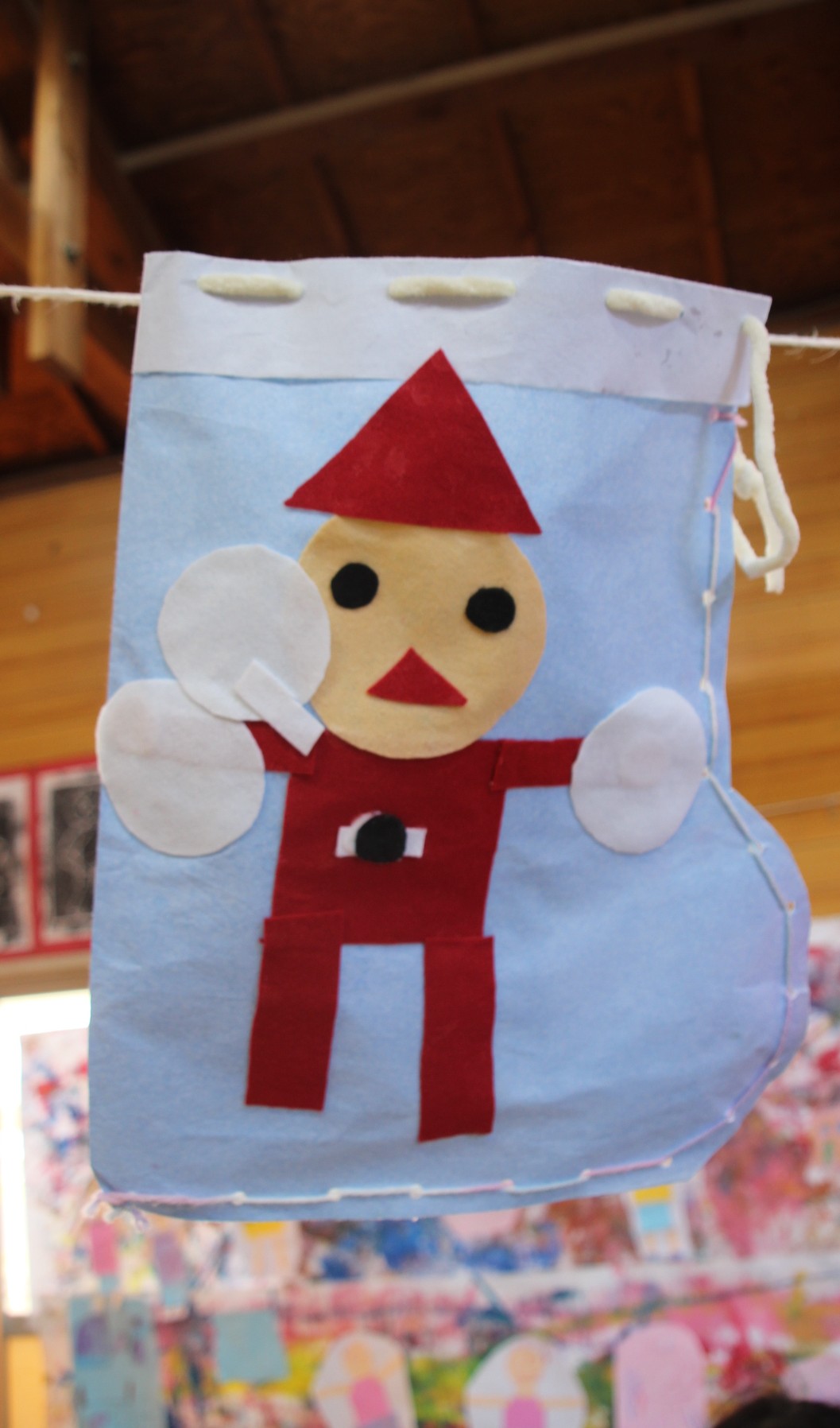 クリスマス会が終わって、クラスに戻ったら、サンタさんが話していた通り、大きな大きな袋があったよ。急いで開けたら、あった あった 昨日 なくなってしまった靴下が・・・靴下の中には、もちろんプレゼント。